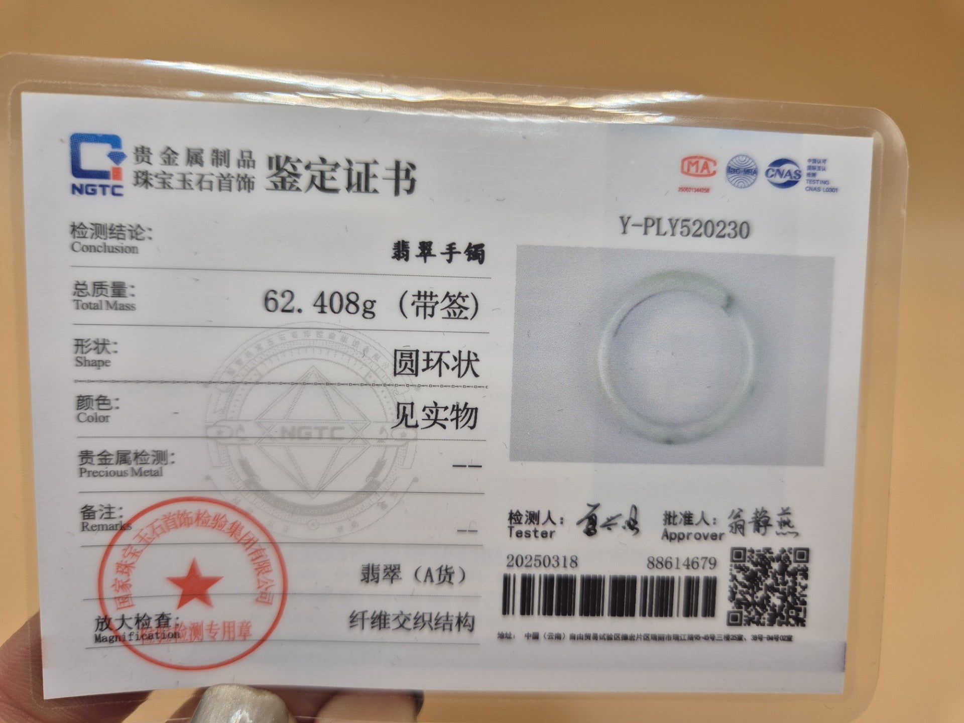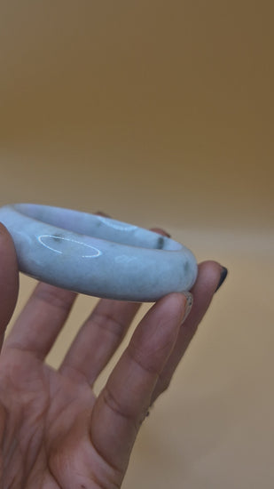 This delicate jadeite bangle showcases a beautiful pastel palette of soft lavender and icy white with hints of green. Its smooth, high-polish finish brings out the natural translucency and calming elegance of the stone. At 53mm, it's perfect for those who prefer a light, graceful touch with a subtle pop of colour. A charming and refined addition to any jade collection. Comes with Certificate of Appraisal.