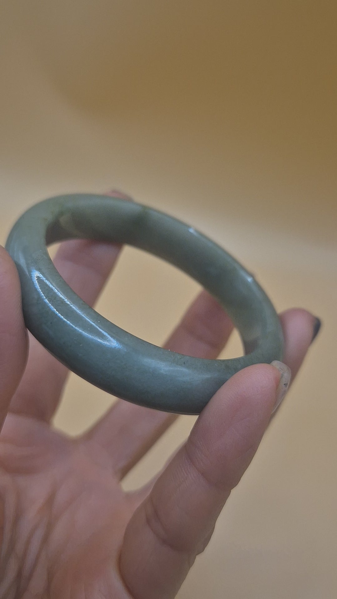 This jadeite bangle features a rich forest green tone with soft natural veining and a glossy, smooth finish. The deep coloration and subtle texture lend it a sense of grounded elegance and timeless appeal. At 51mm, it’s a compact and comfortable fit, perfect for everyday wear or as a meaningful gift with classic jadeite beauty.